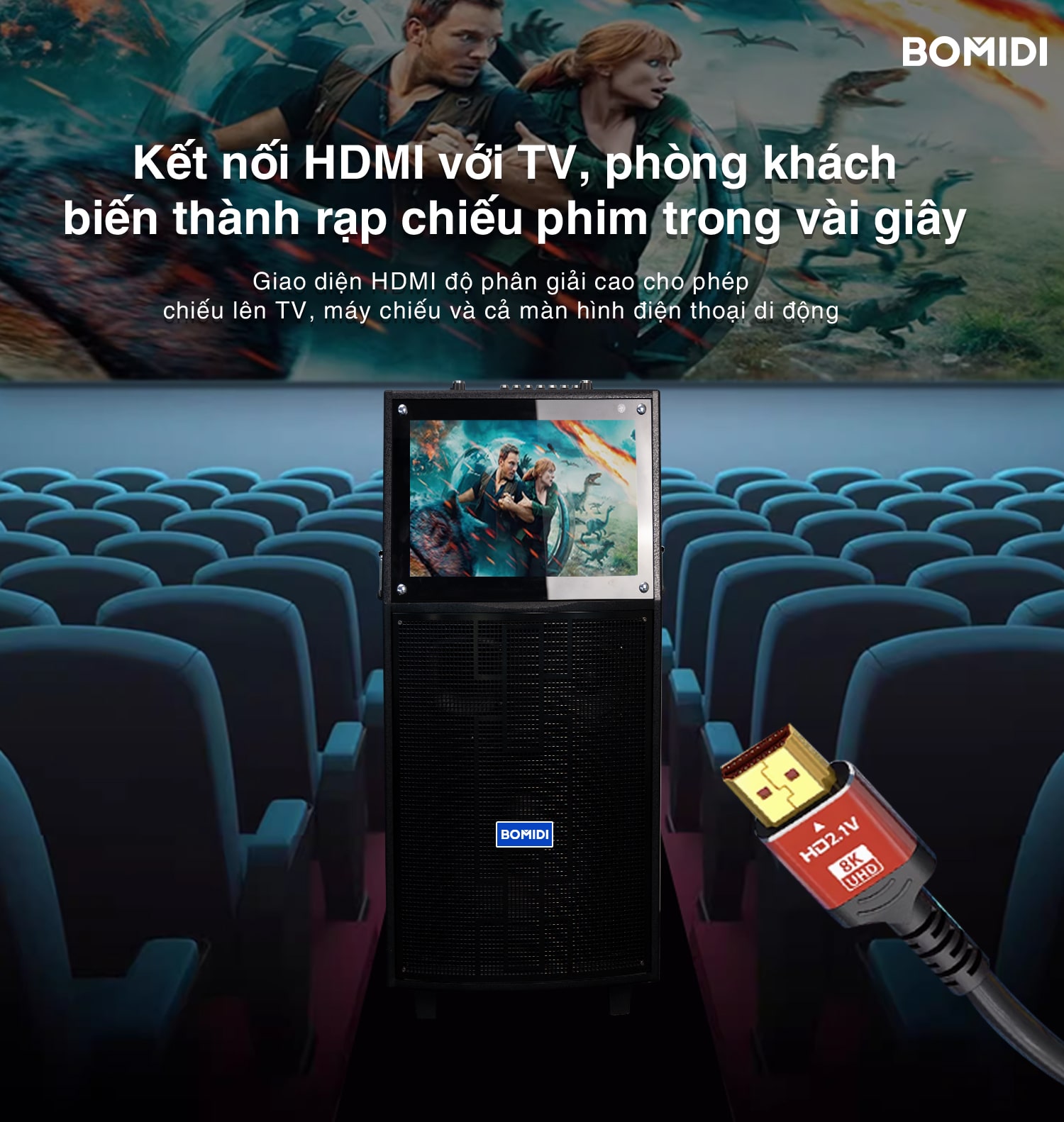 - Cổng HDMI: Kết nối loa với TV hoặc các thiết bị phát video khác, biến Bomidi TS01 thành hệ thống giải trí tại gia hoàn hảo.