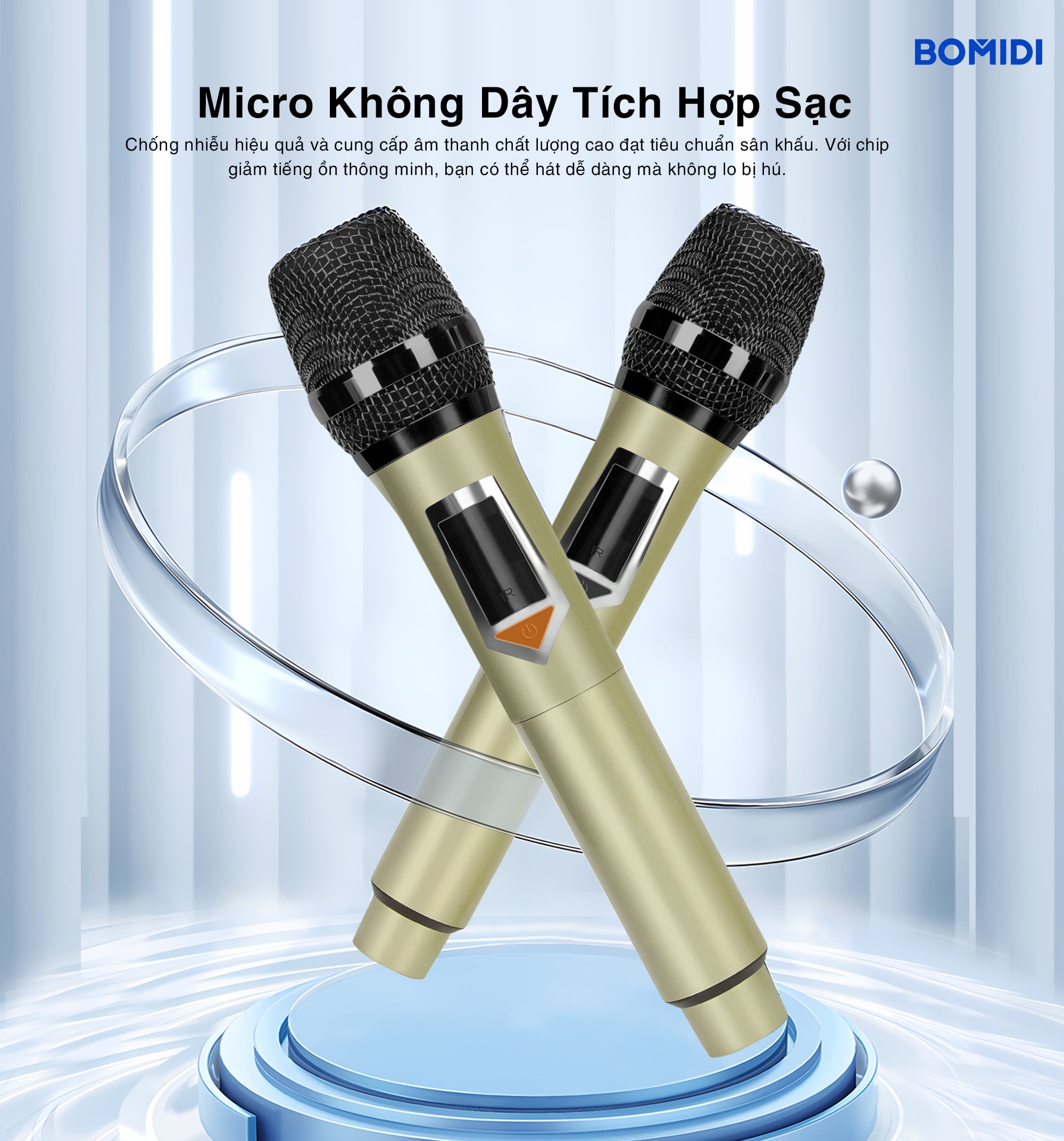- Micro không dây: Đi kèm với loa là cặp micro không dây UHF với khả năng hút âm chuẩn xác, cho phép bạn tự do di chuyển và biểu diễn mà không lo vướng víu.