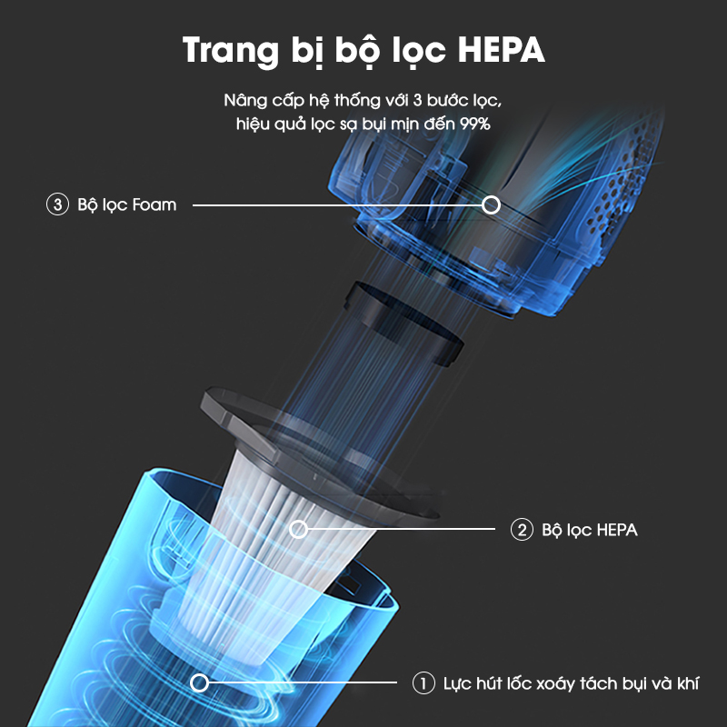 - Bộ lọc Hepa lọc sạch hiệu quả